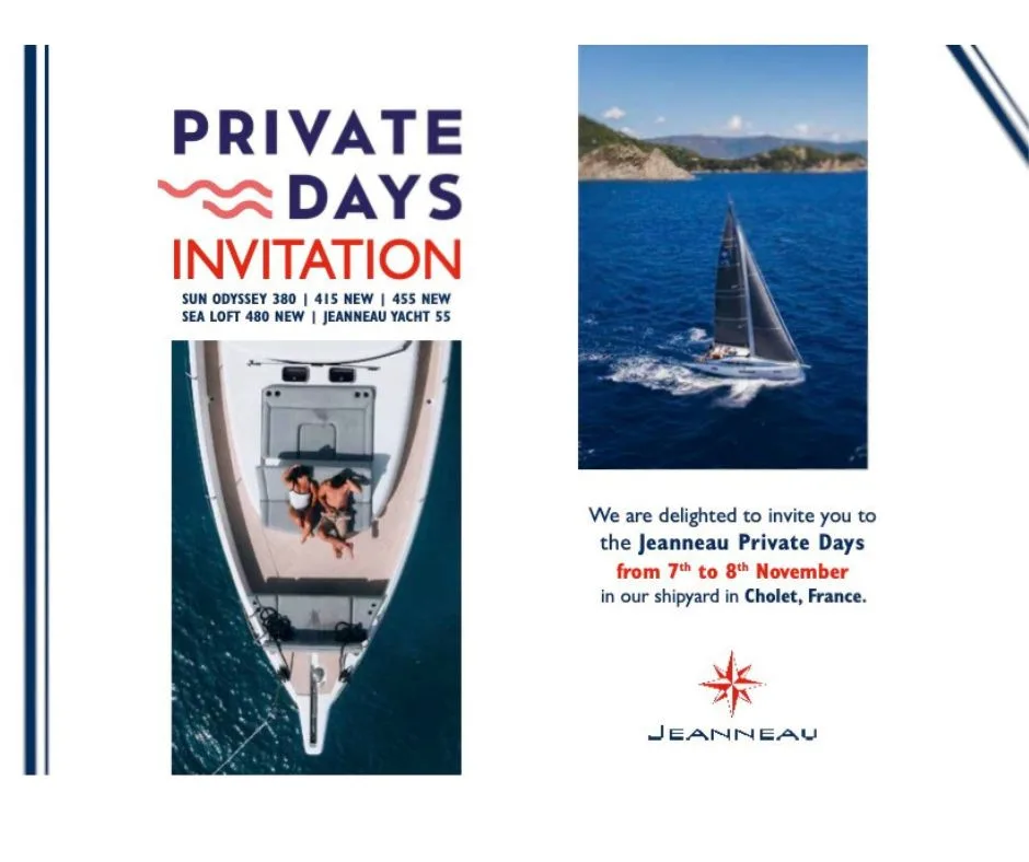 We are delighted to invite you to a truly special event – the Jeanneau Private Days at the Cholet factory in France, taking place from 7th–8th November 2025. This exclusive, invitation-only event gives you a rare opportunity to go behind the scenes and explore how Jeanneau yachts are crafted, from design to final launch.